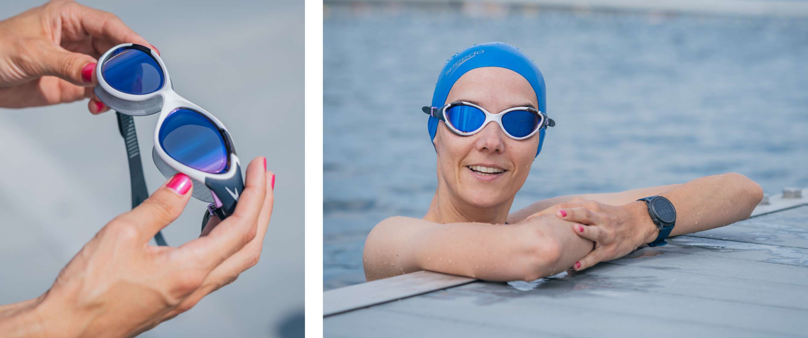 Een gloednieuwe zwembril maakte de outfit van Brenda compleet. Hoe heeft ze de Biofuse 2.0 ervaren tijdens haar testmaanden? "Het viel me meteen op dat je een heel breed, helder zicht hebt met deze bril, zowel binnen als buiten. Spiegelglazen kunnen in een zwembad soms te donker zijn, maar dat was hier niet het geval."