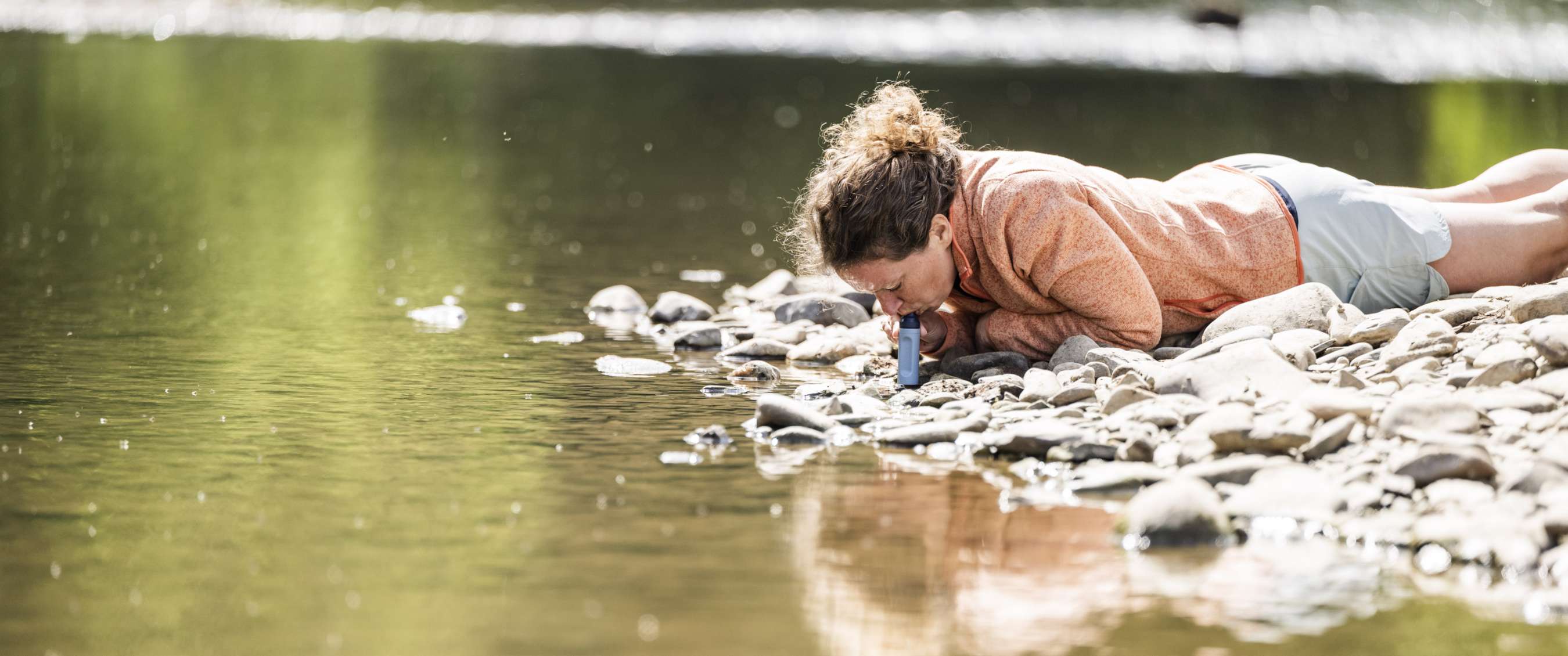 Sylvie testte alle opties, maar merkt op: "De LifeStraw is echt kort, wat maakt dat rechtstreeks uit een meer of rivier drinken lastig is. Je moet al een goede plek vinden waar je plat op je buik kunt gaan liggen zonder nat of helemaal vuil te worden."